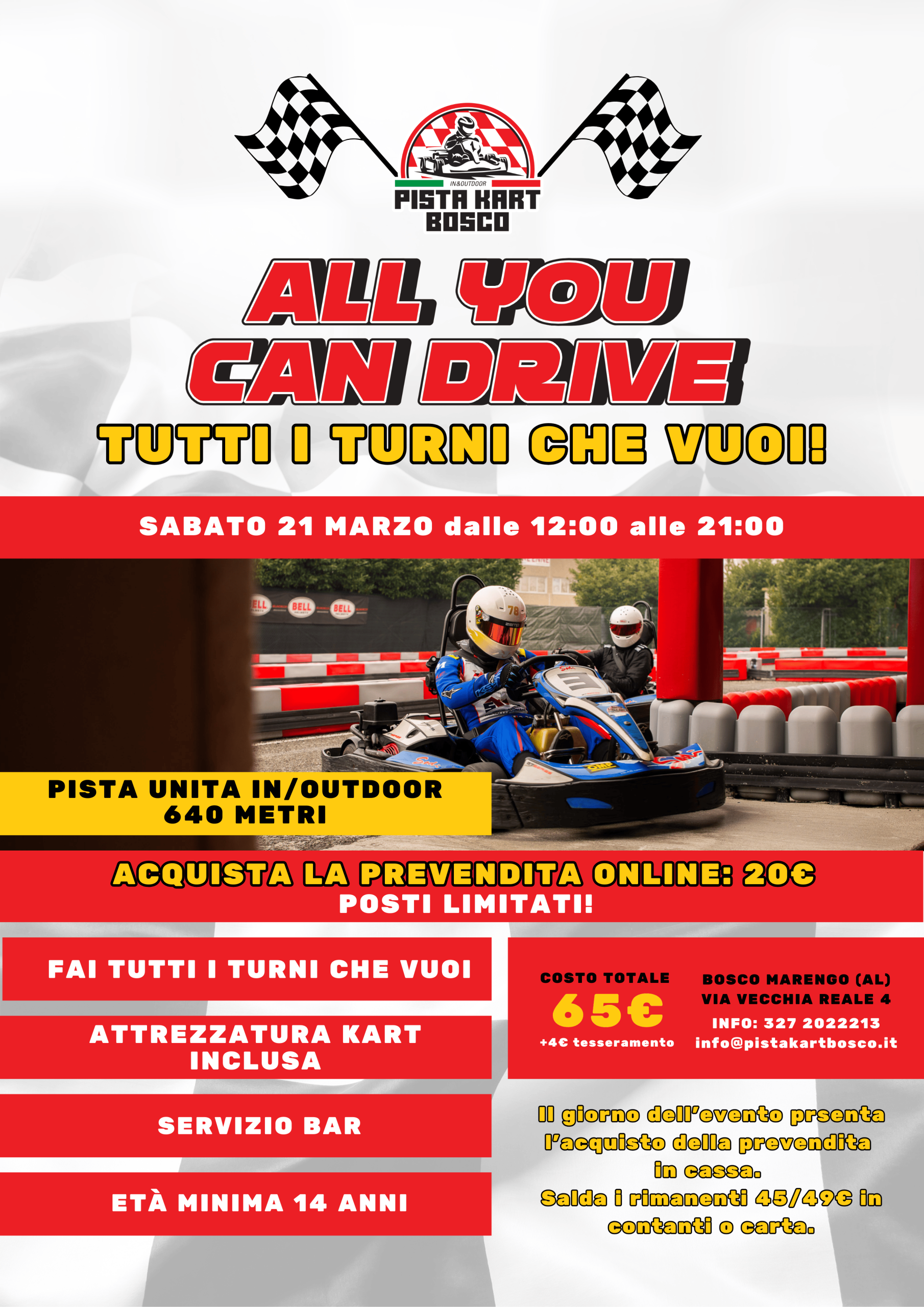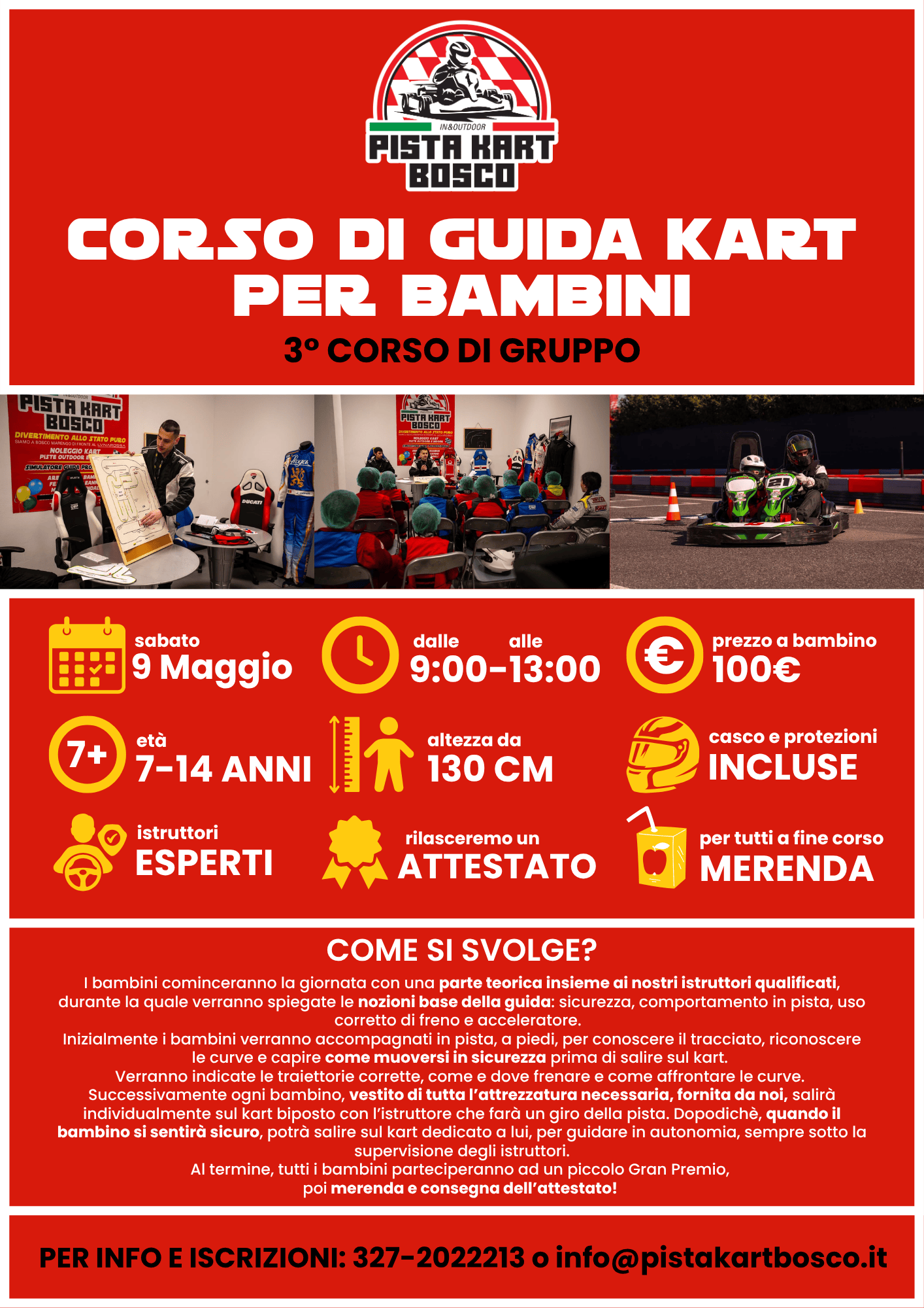 Qui in Pista Kart Bosco puoi gustarti l’ebbrezza di correre in pista e scatenare la tua passione per le corse. Siamo attrezzati per soddisfare le esigenze dei piloti esperti e meno esperti, sia adulti che bambini.